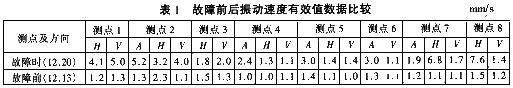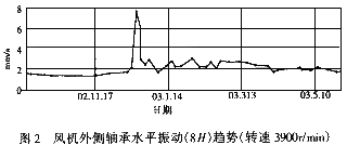 此次振動故障原因在電機處,而振動最突出的卻在風機處。若按常理,頭痛醫(yī)頭,腳痛醫(yī)腳,則無法對癥消除故障,這正是狀態(tài)監(jiān)測診斷技術的優(yōu)勢所在,尤其對區(qū)分變速機械的振動原因很有用。